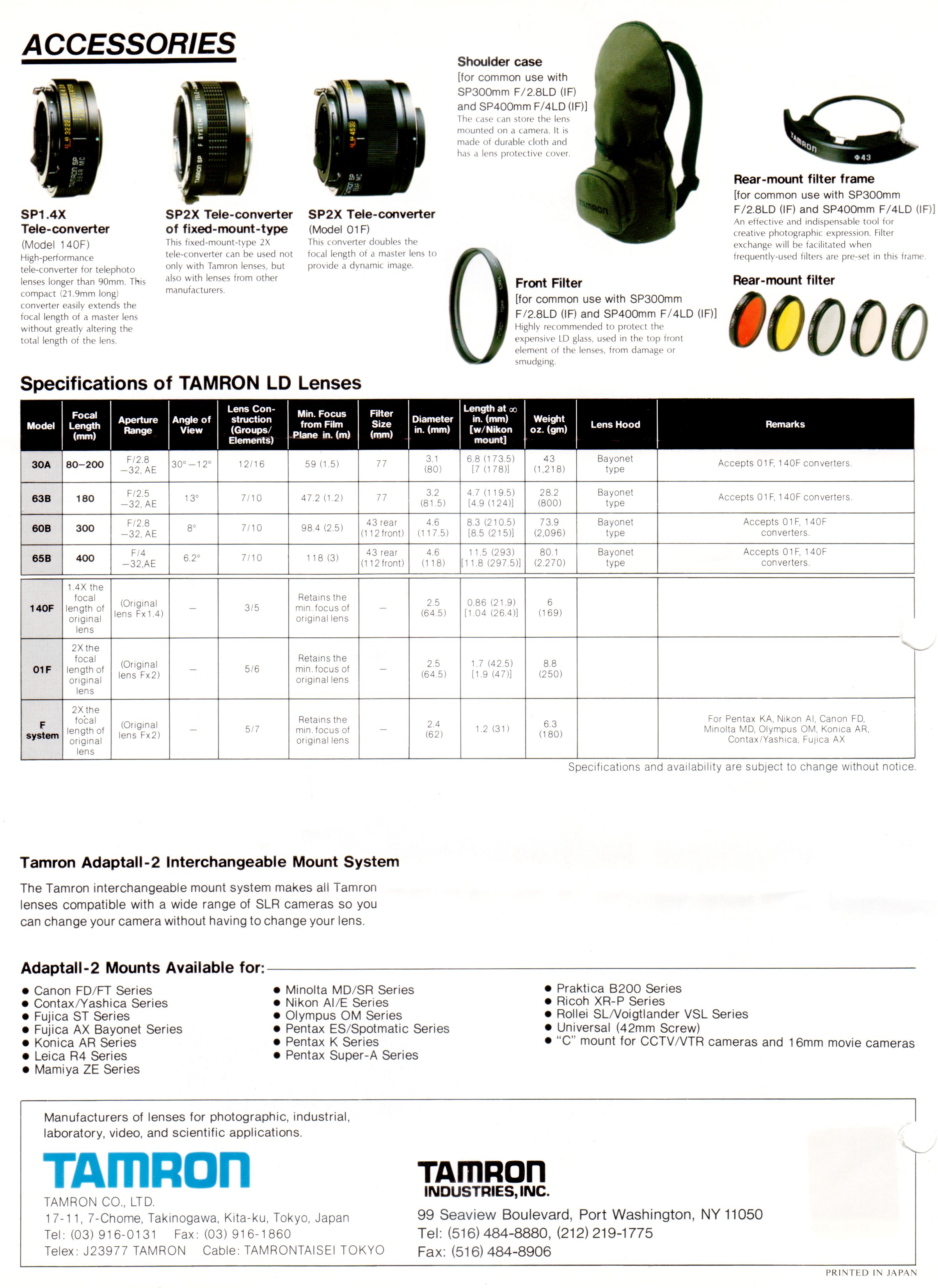 Tamron sales brochures, advertisements, catalogs and flyers. Brochures for a