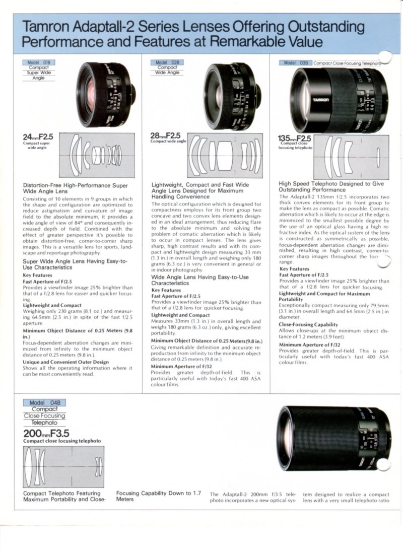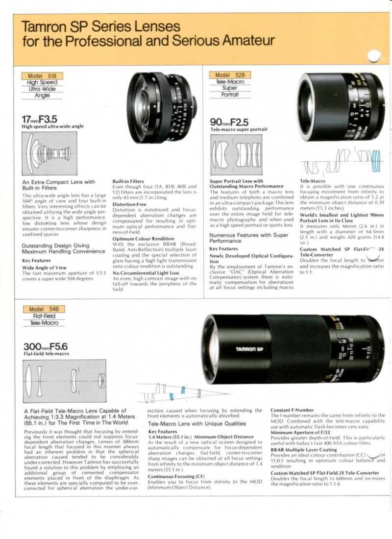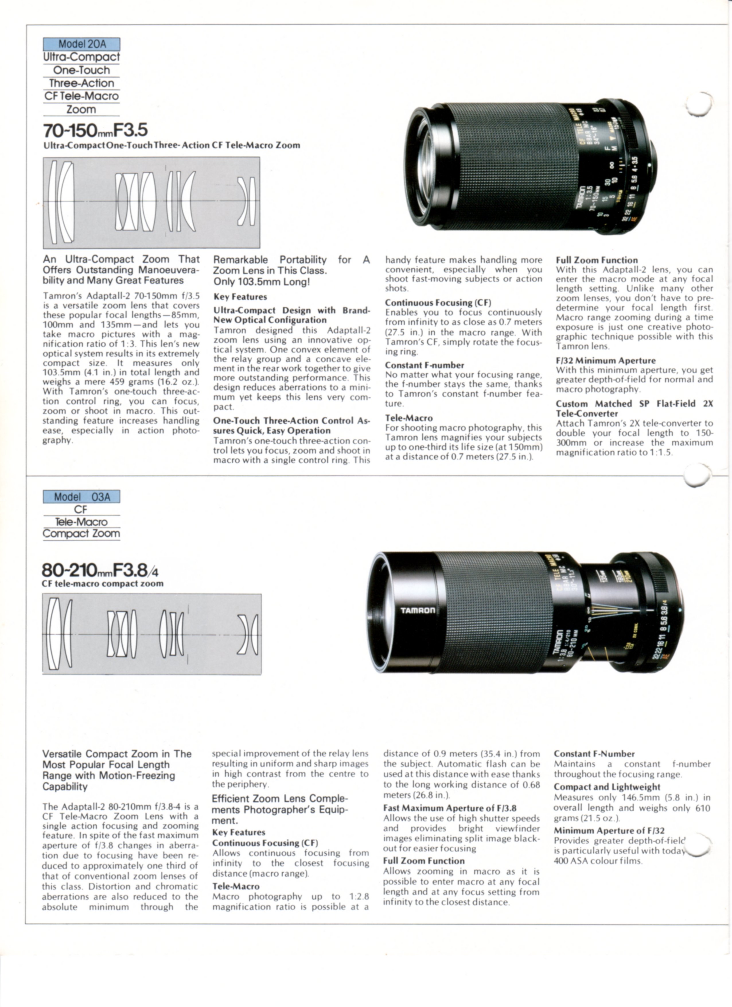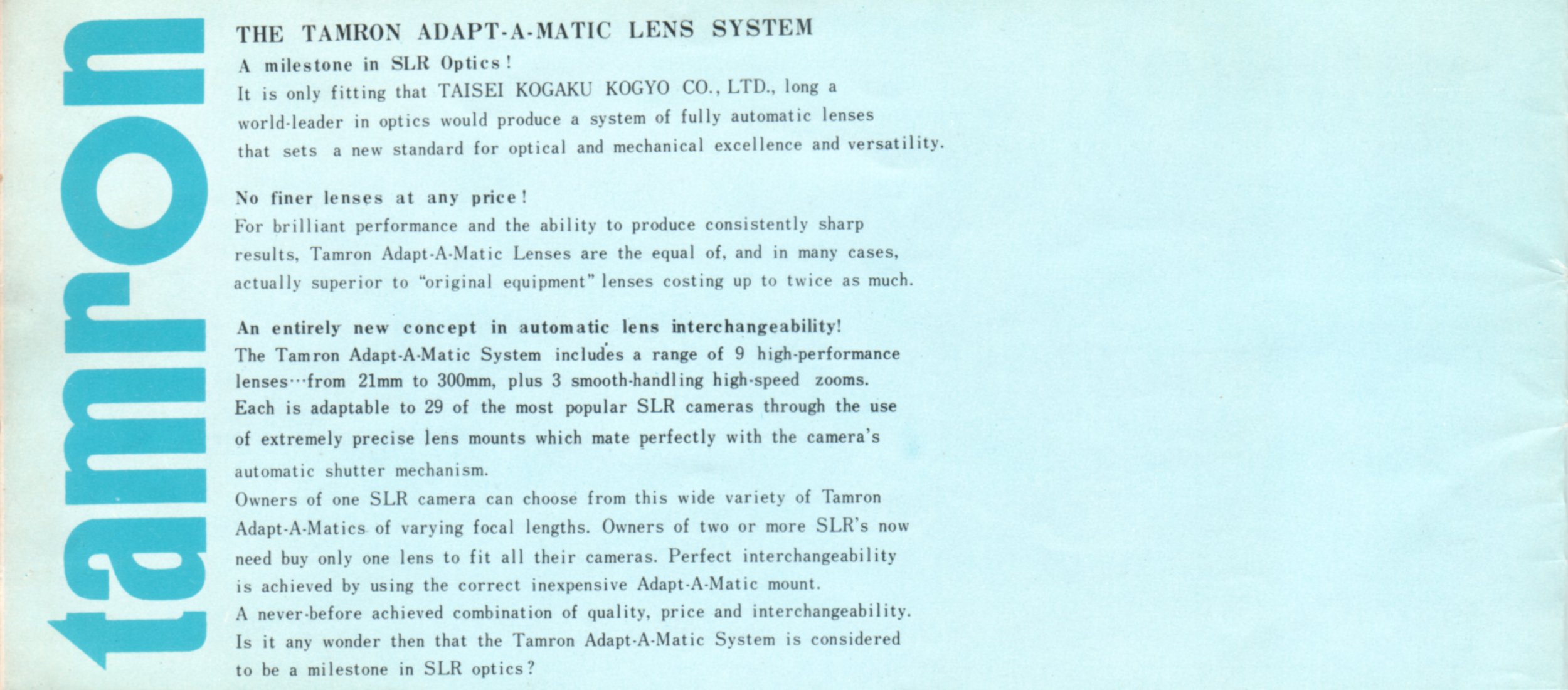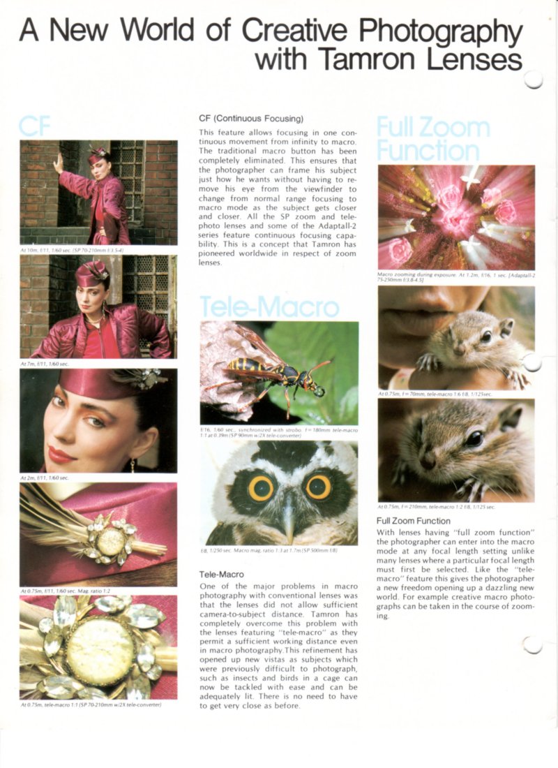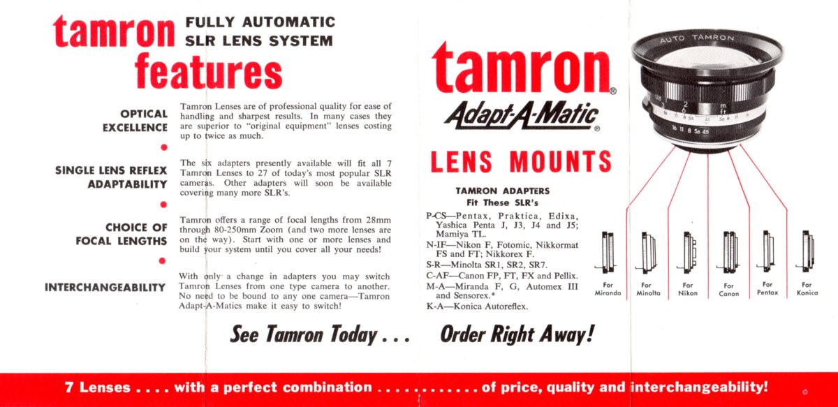 Tamron sales brochures, advertisements, catalogs and flyers. Brochures for a