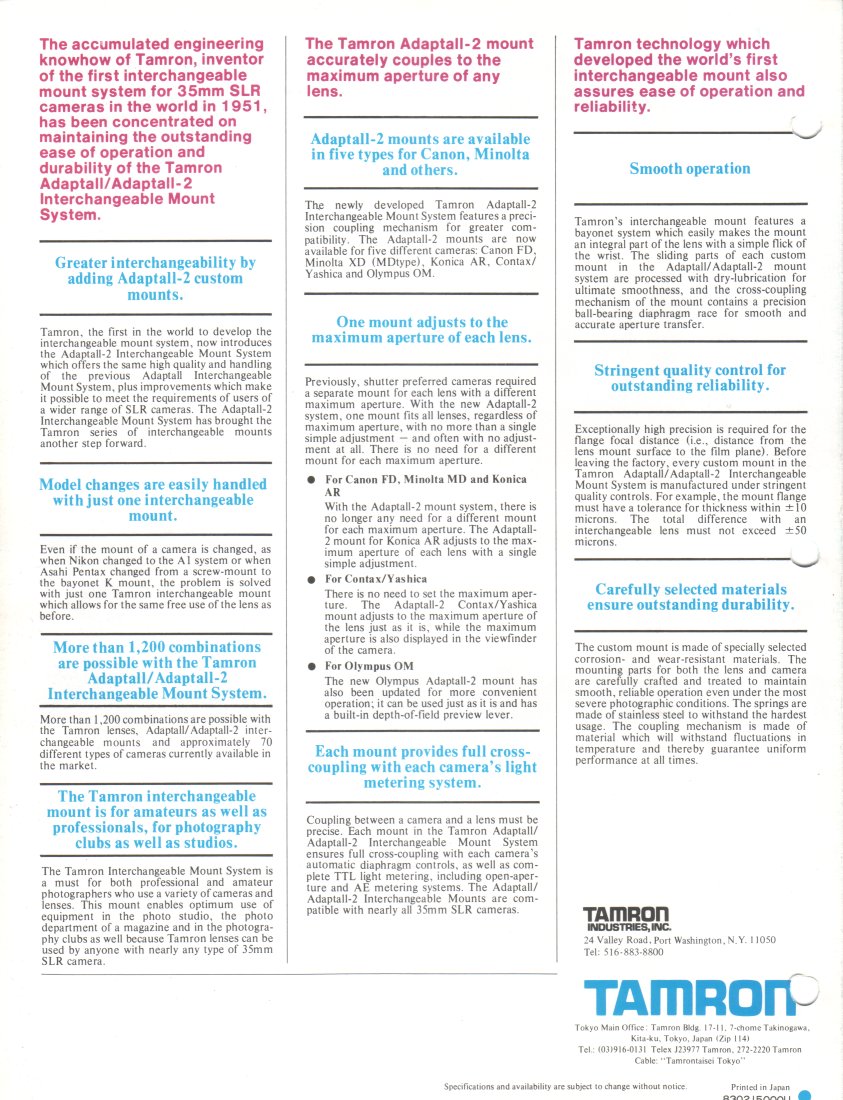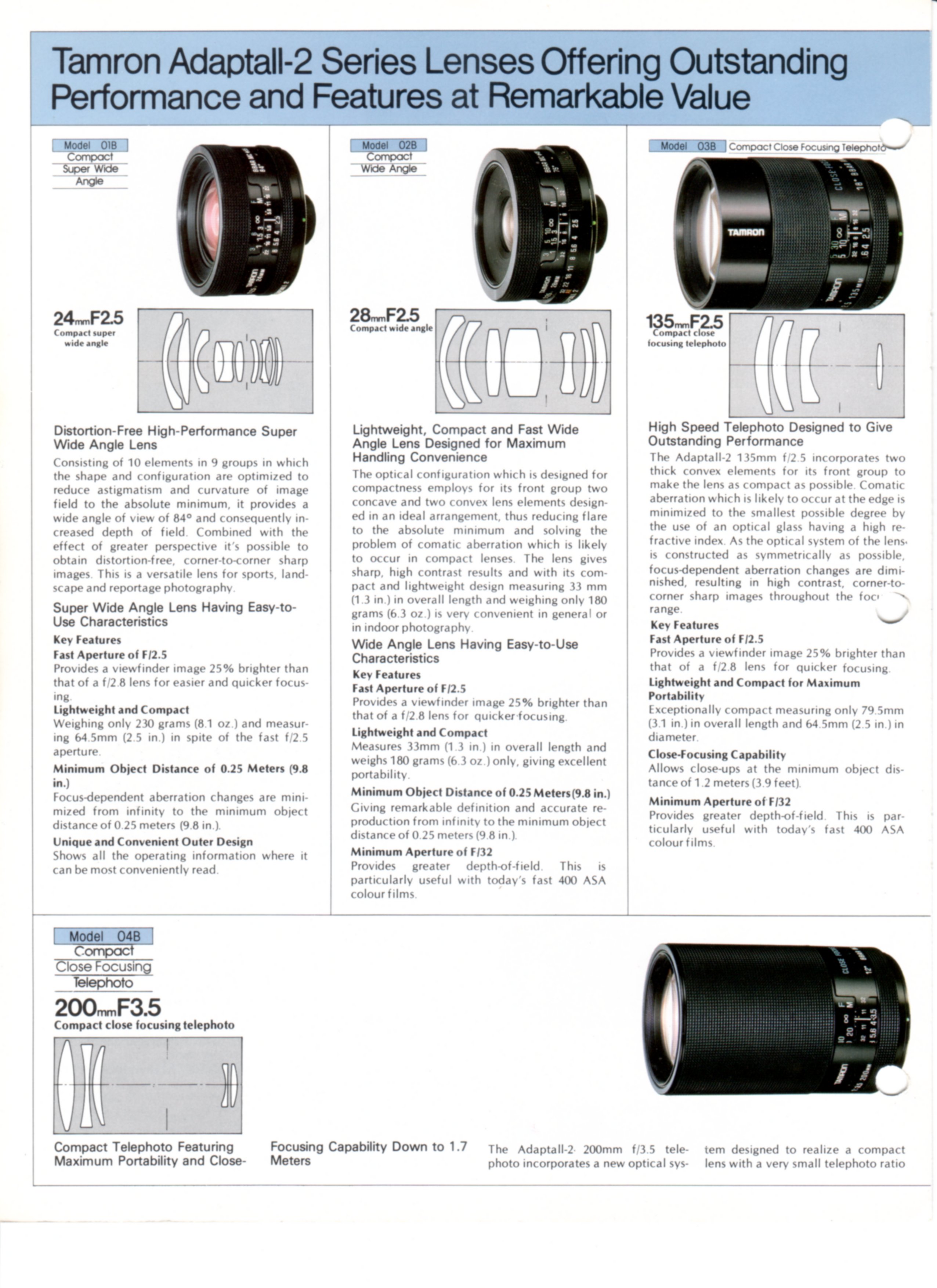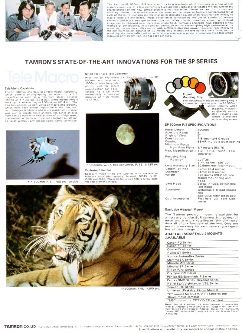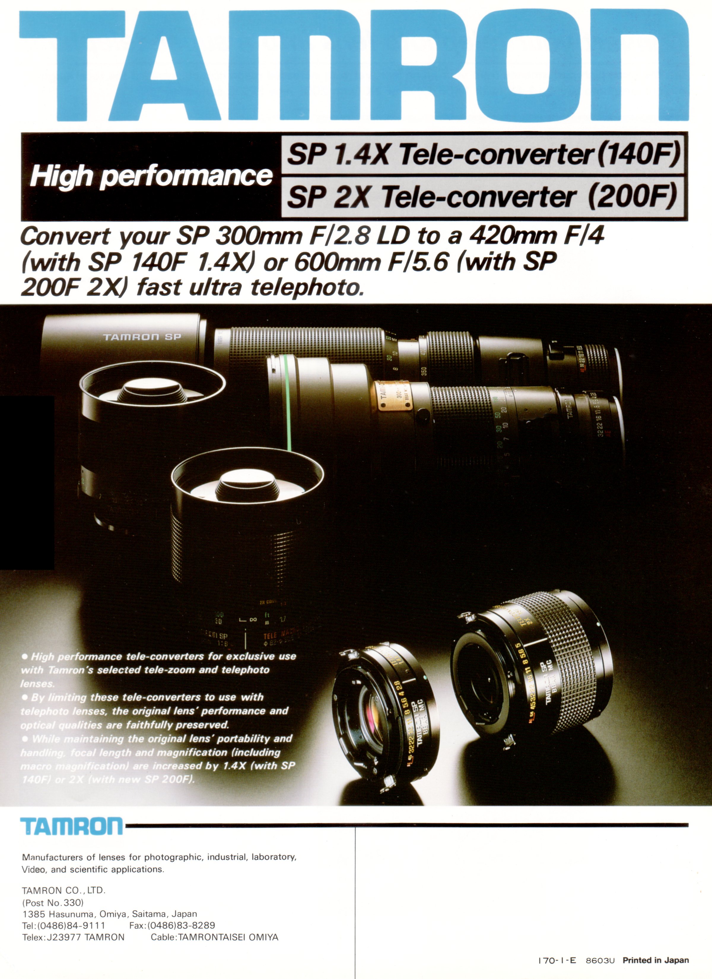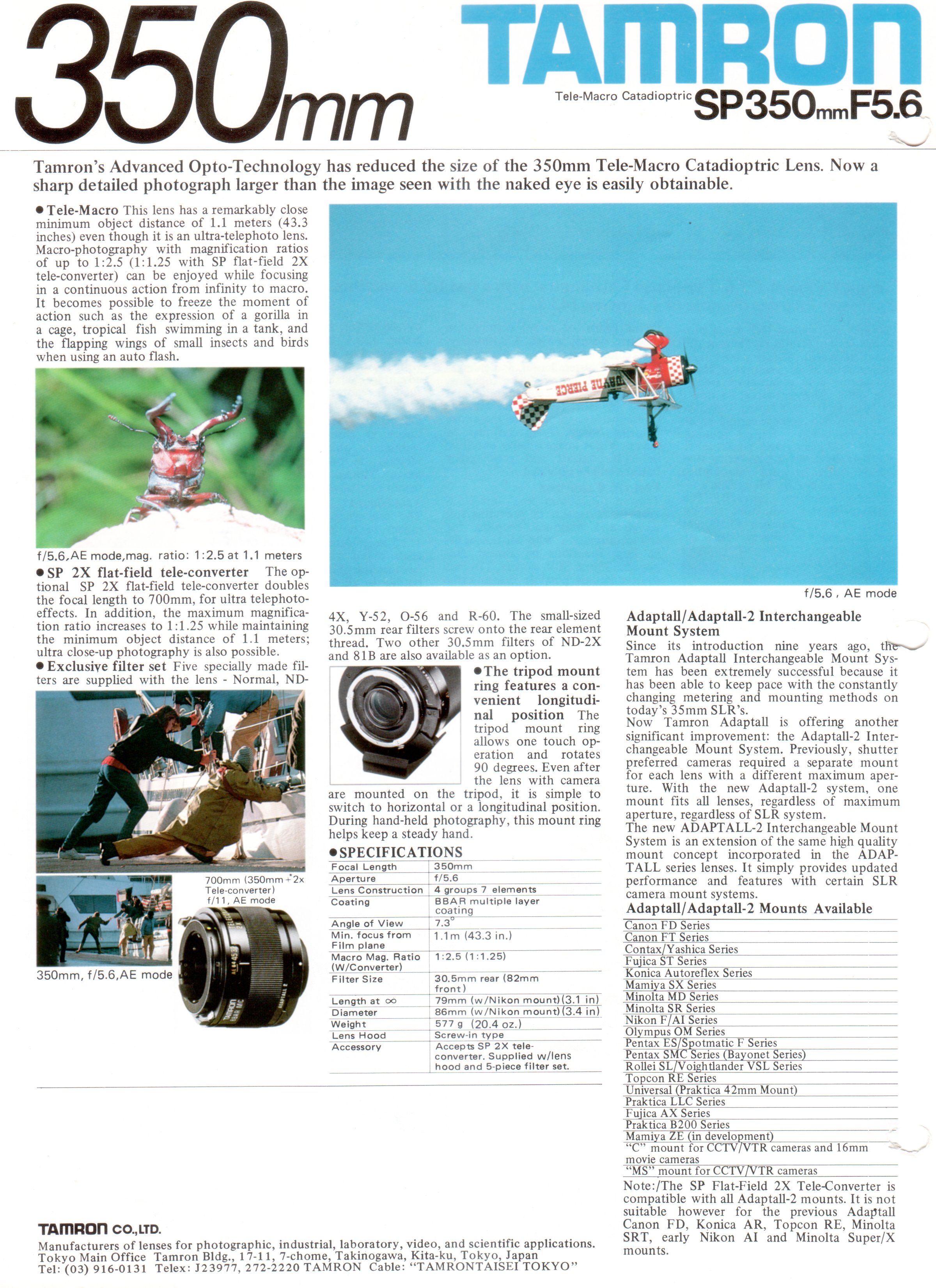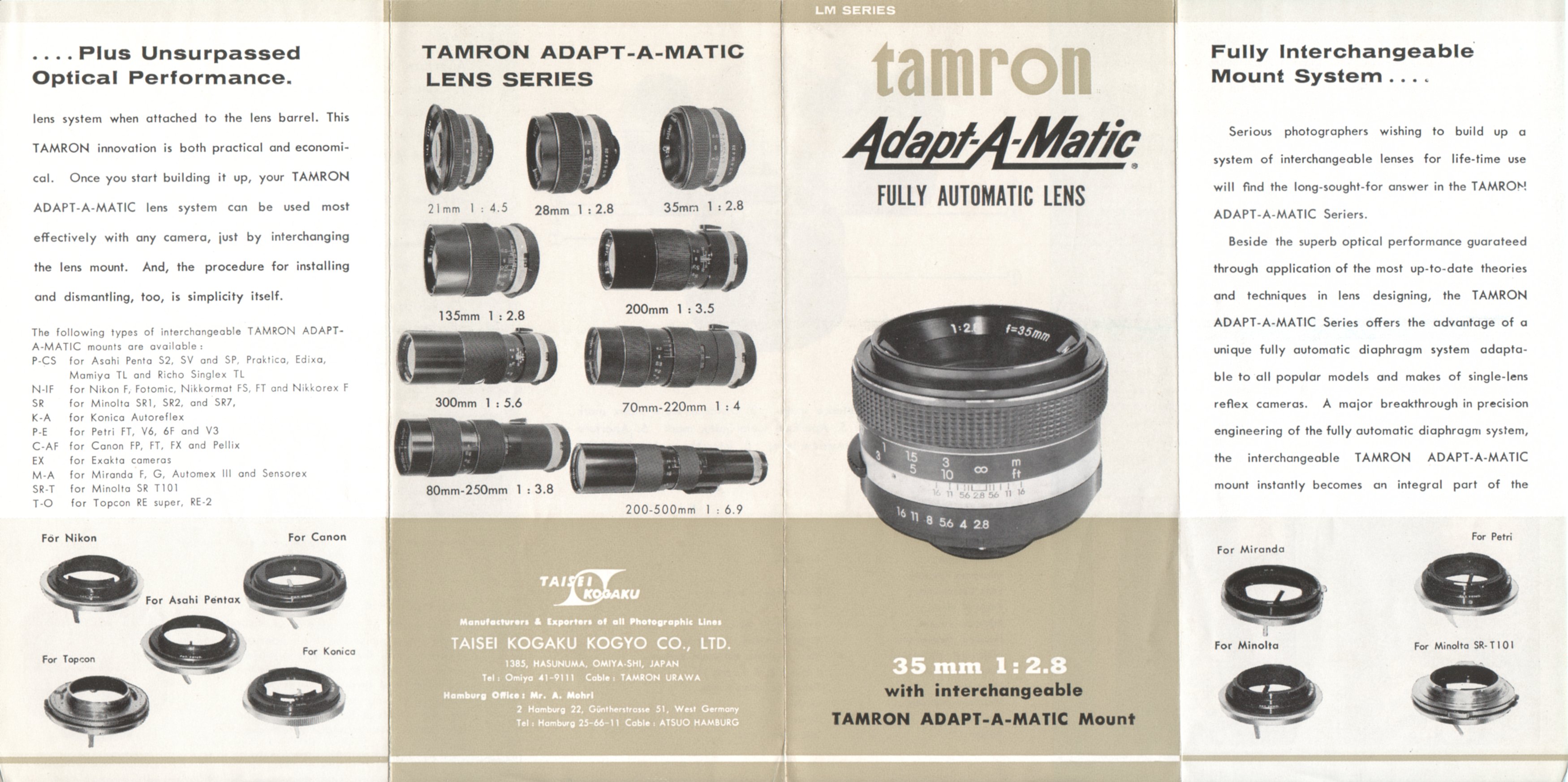 Tamron sales brochures, advertisements, catalogs and flyers. Brochures for a