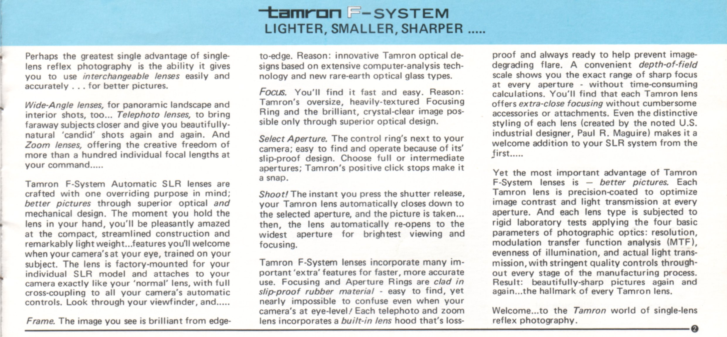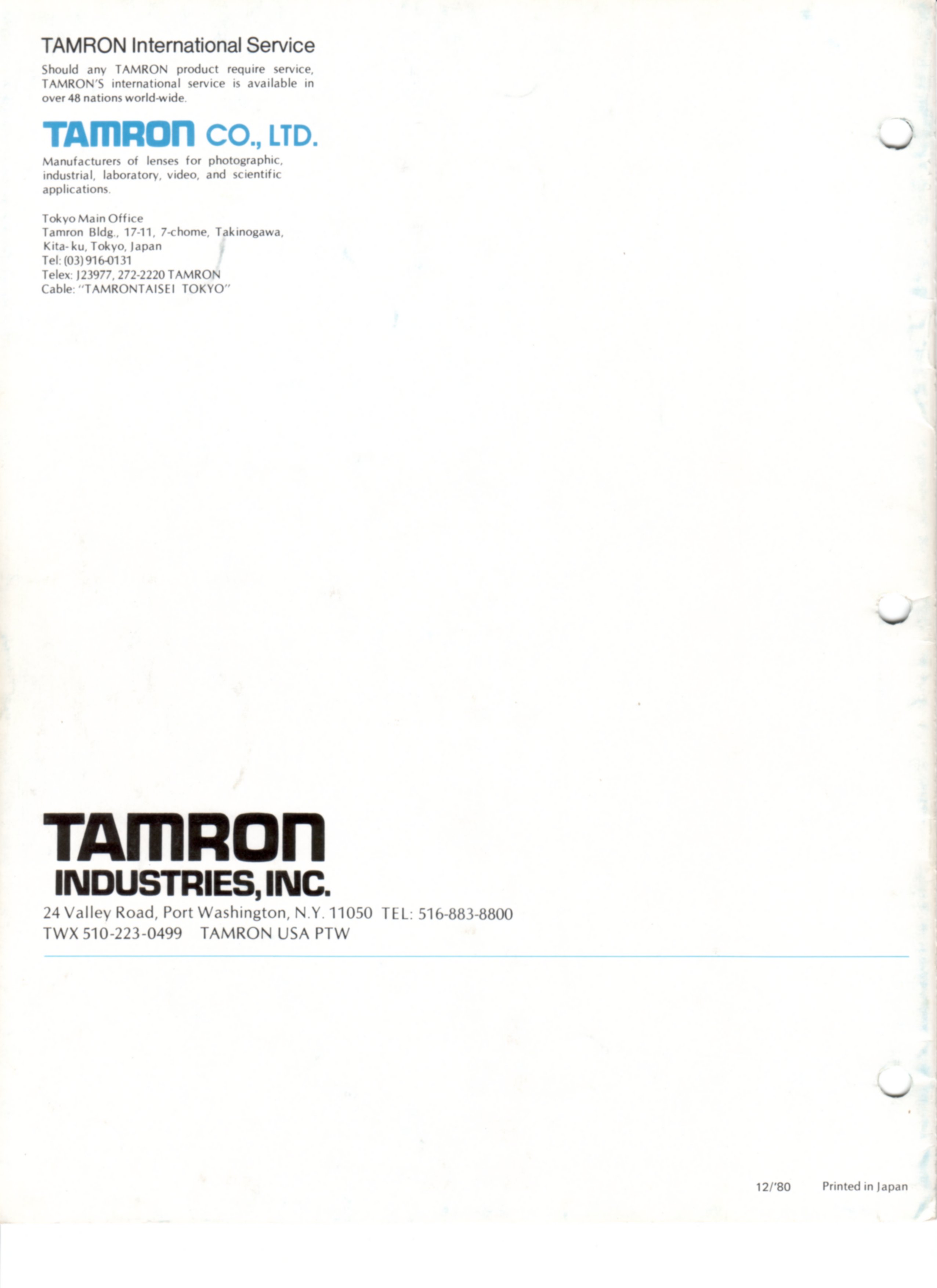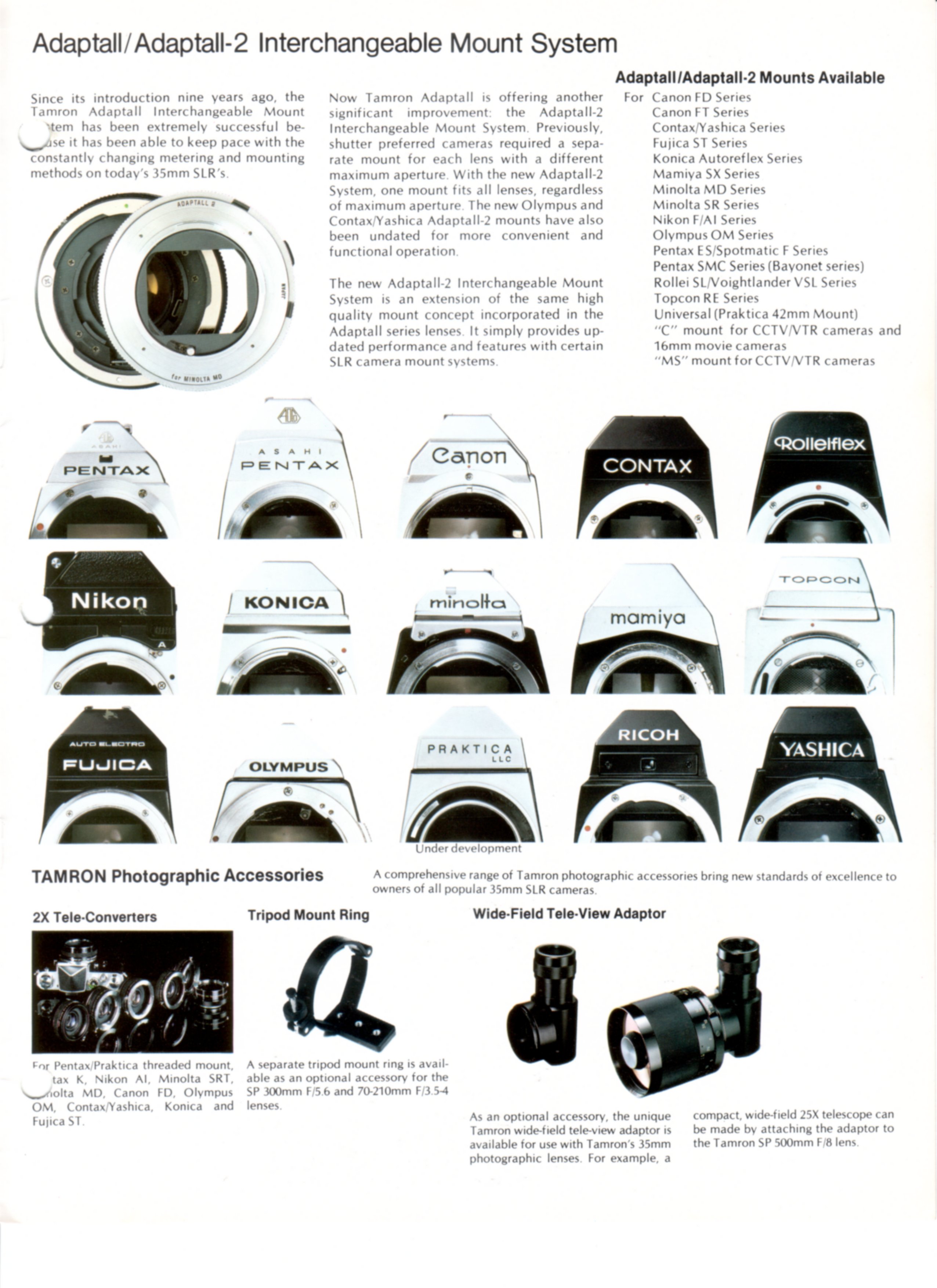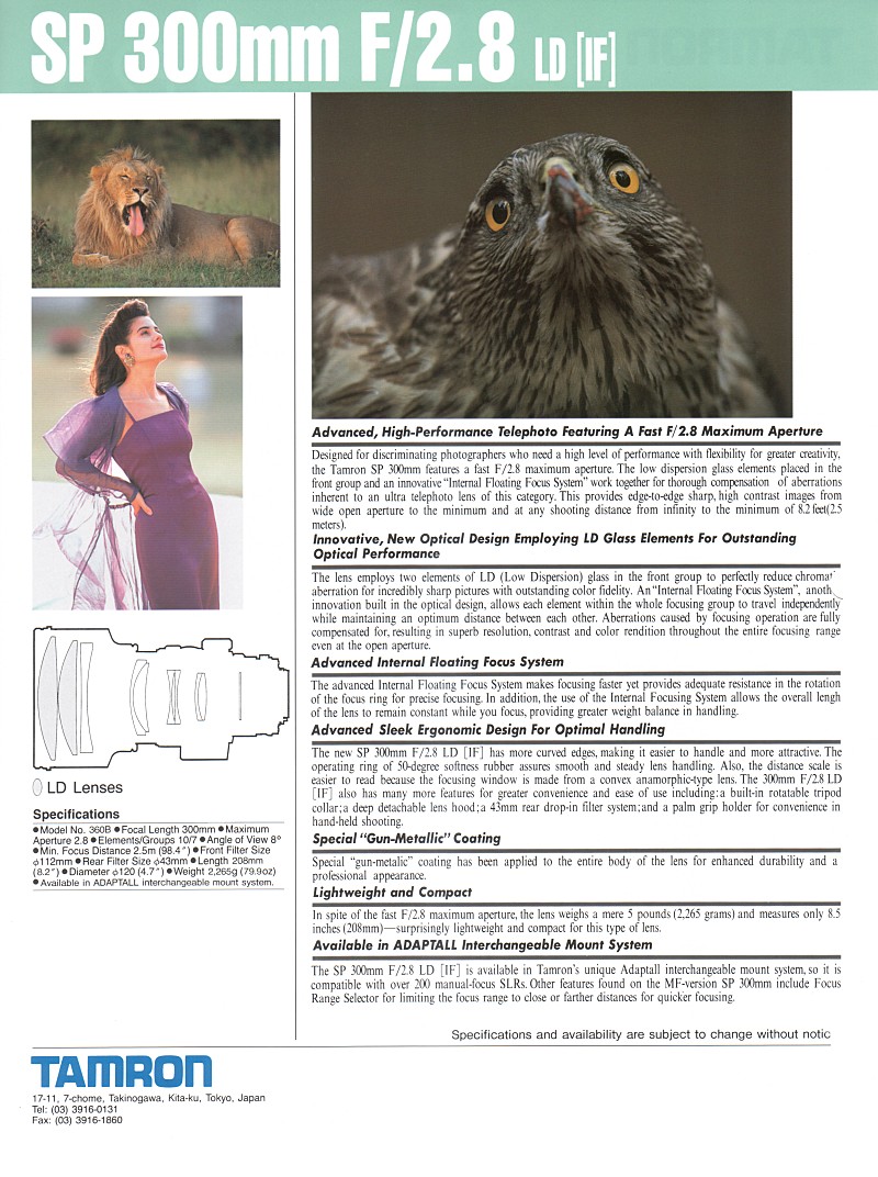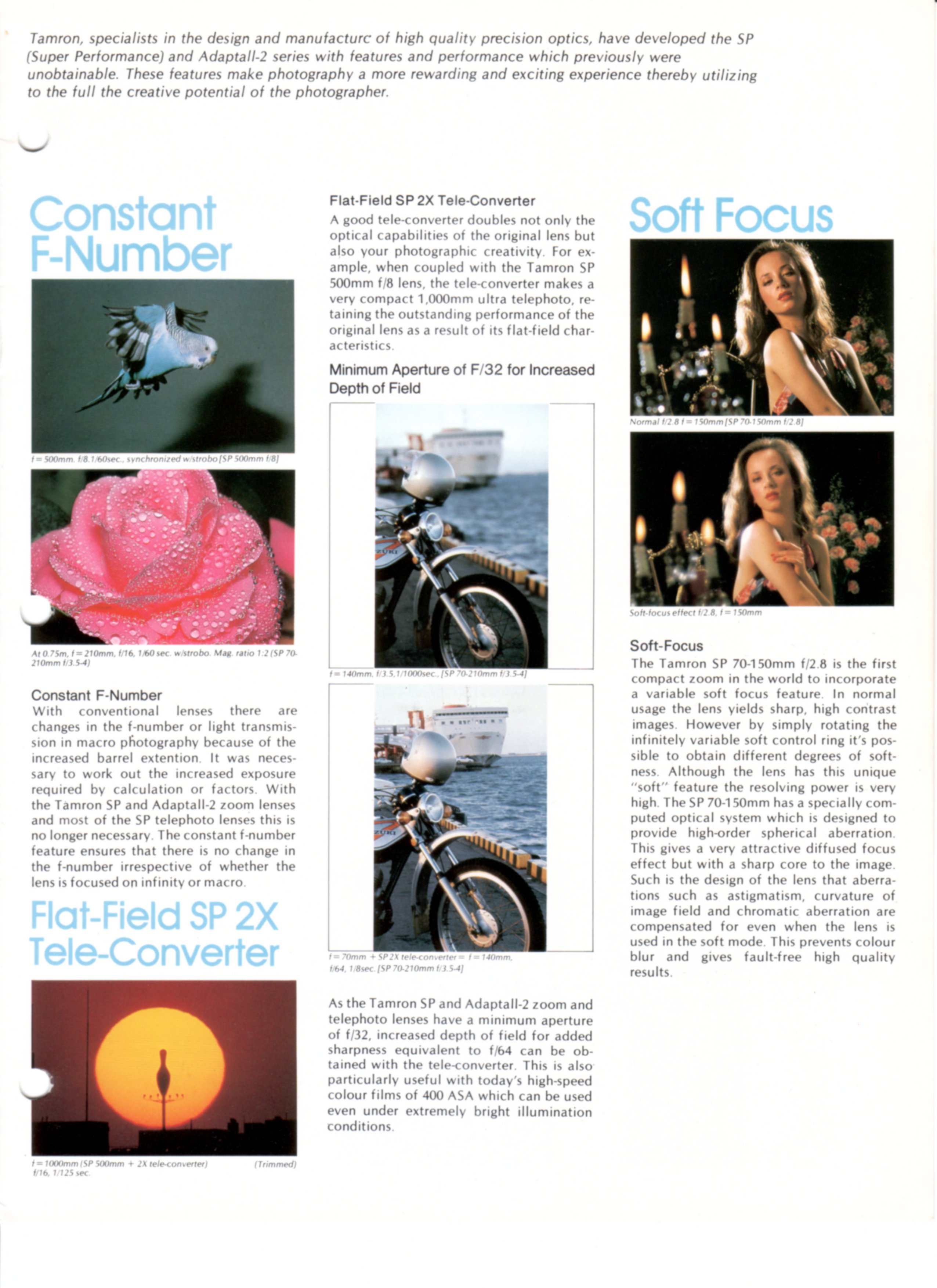 Tamron sales brochures, advertisements, catalogs and flyers. Brochures for a