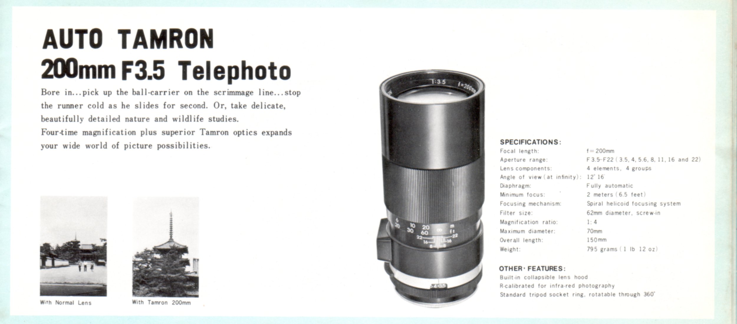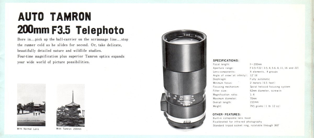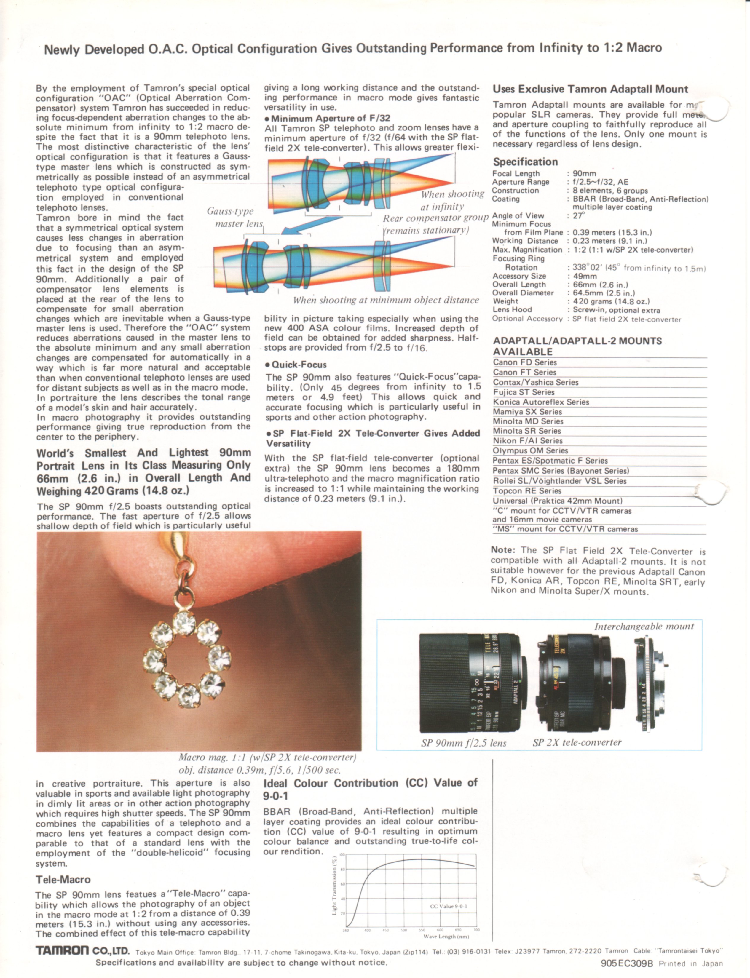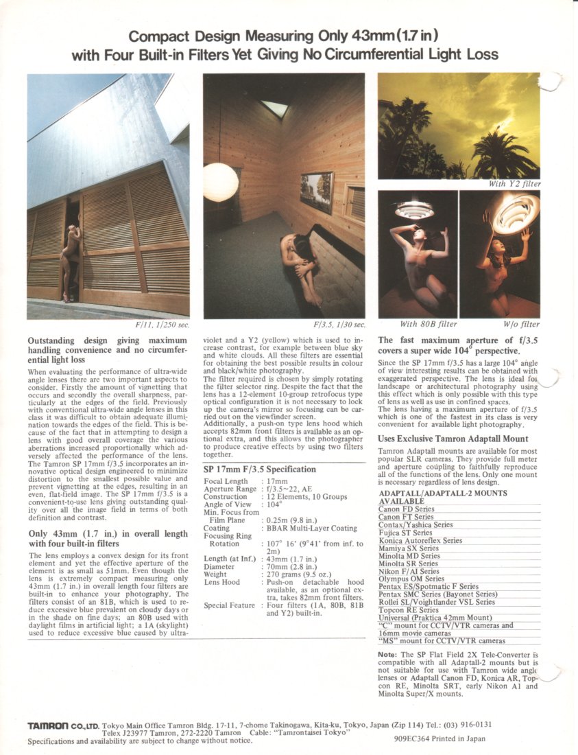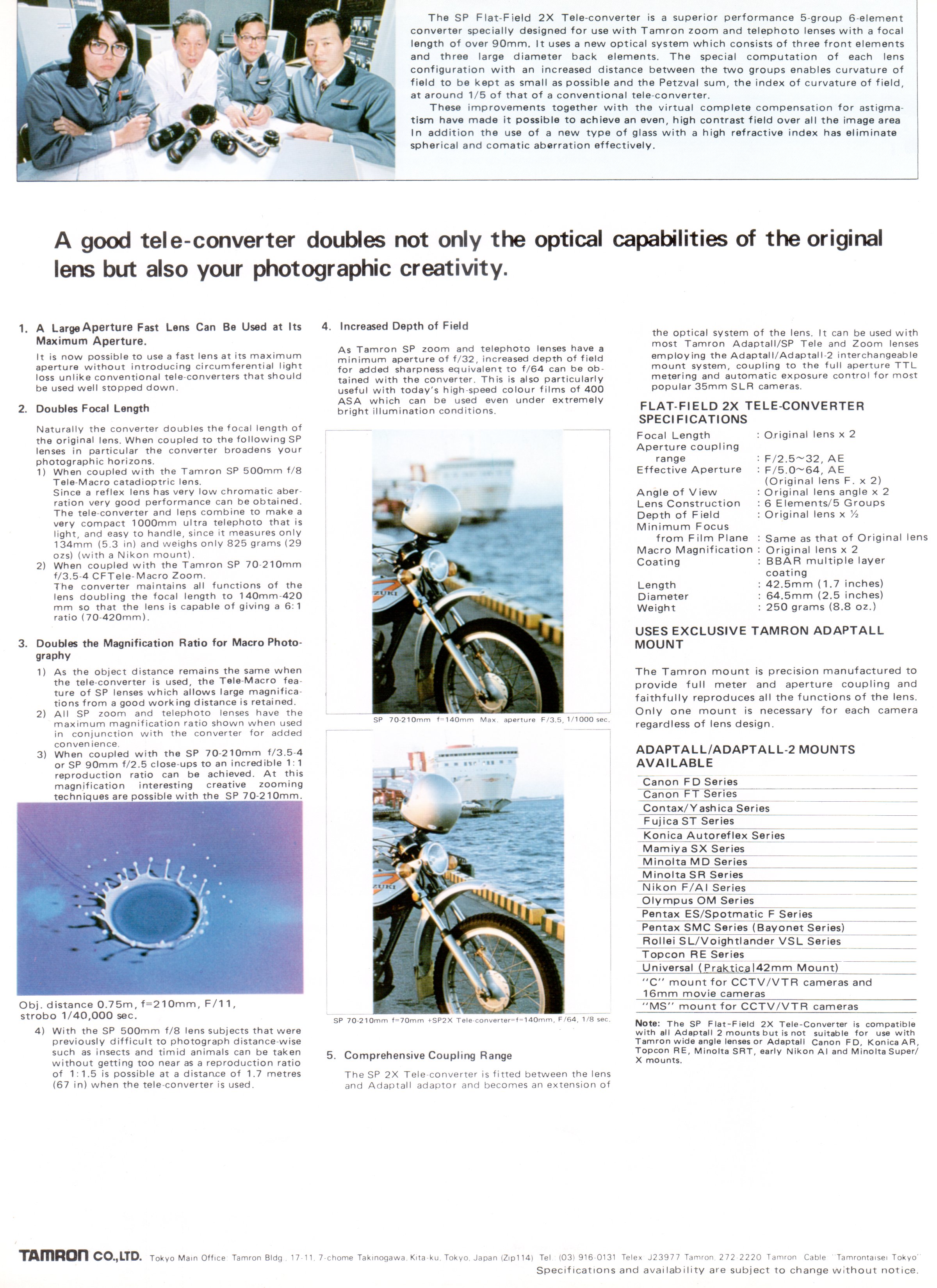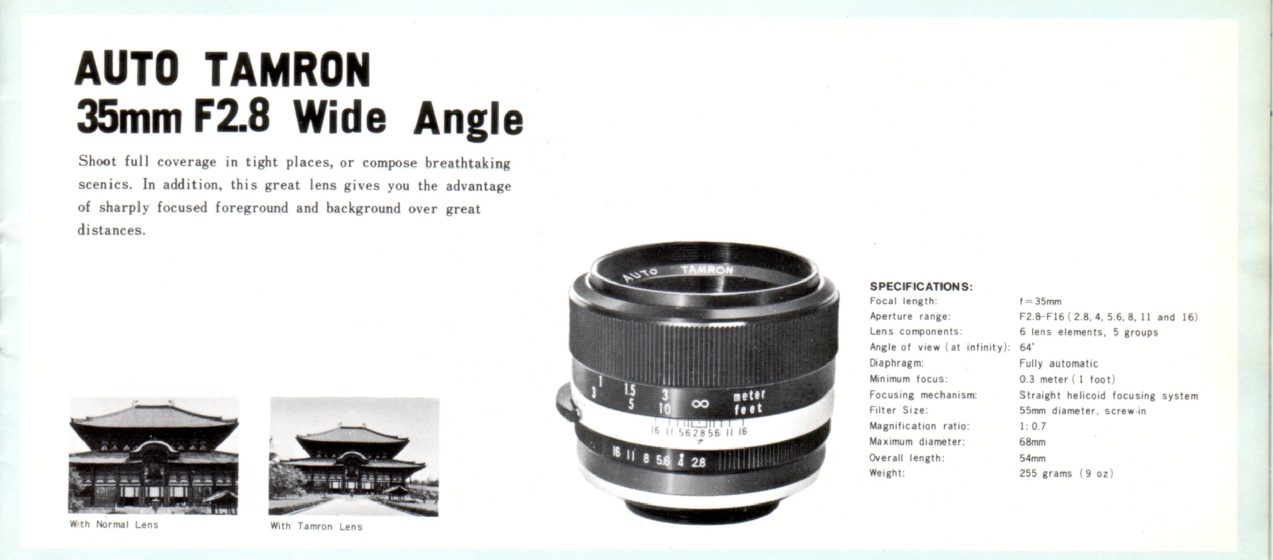 Tamron sales brochures, advertisements, catalogs and flyers. Brochures for a