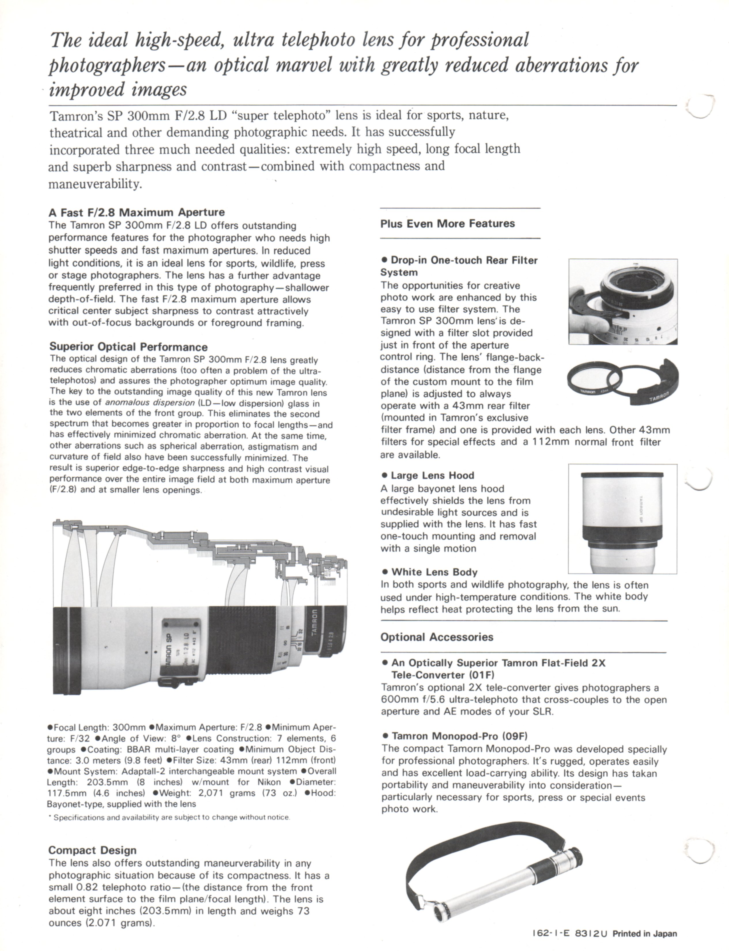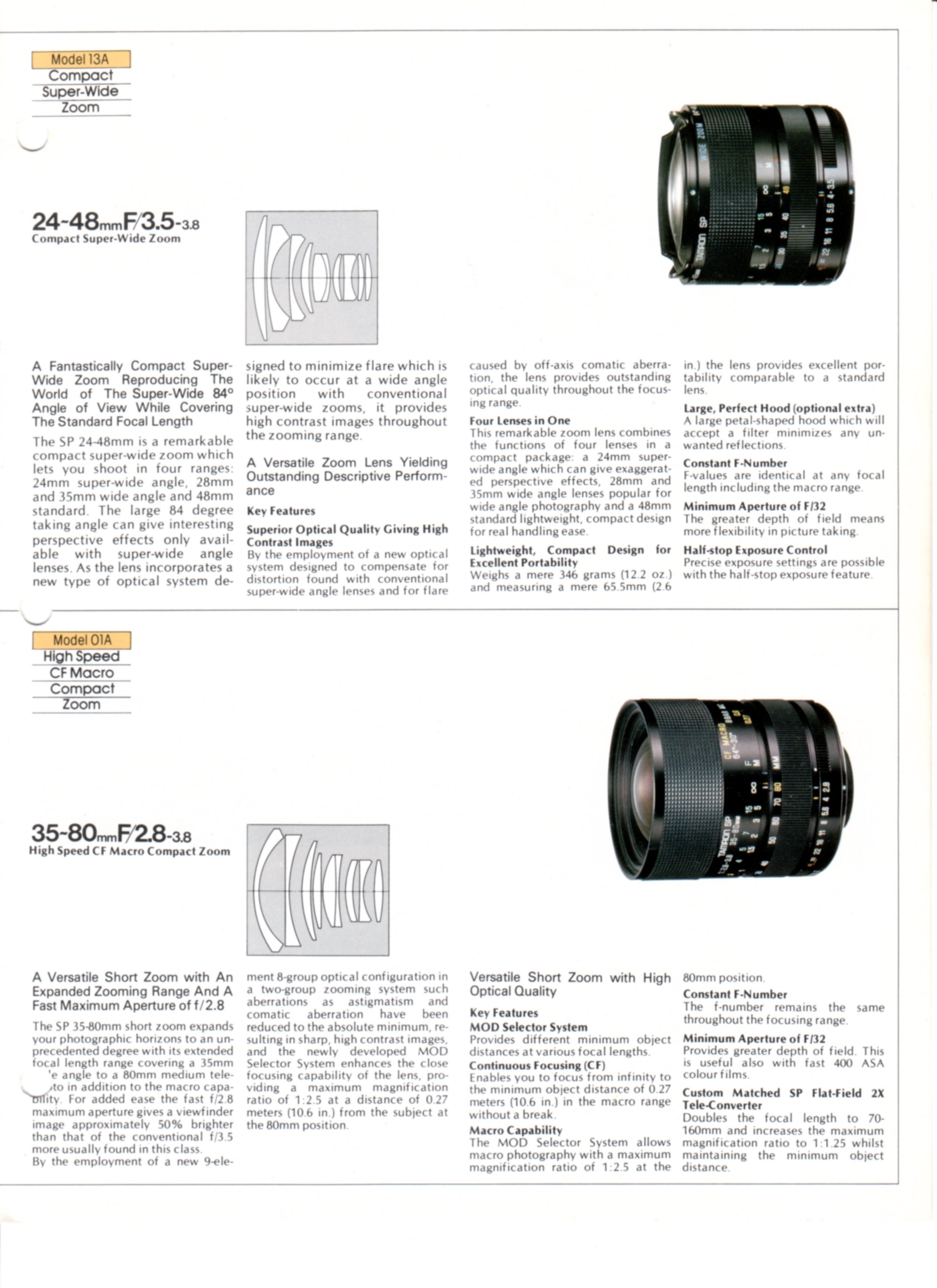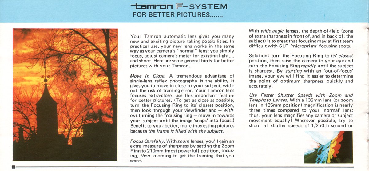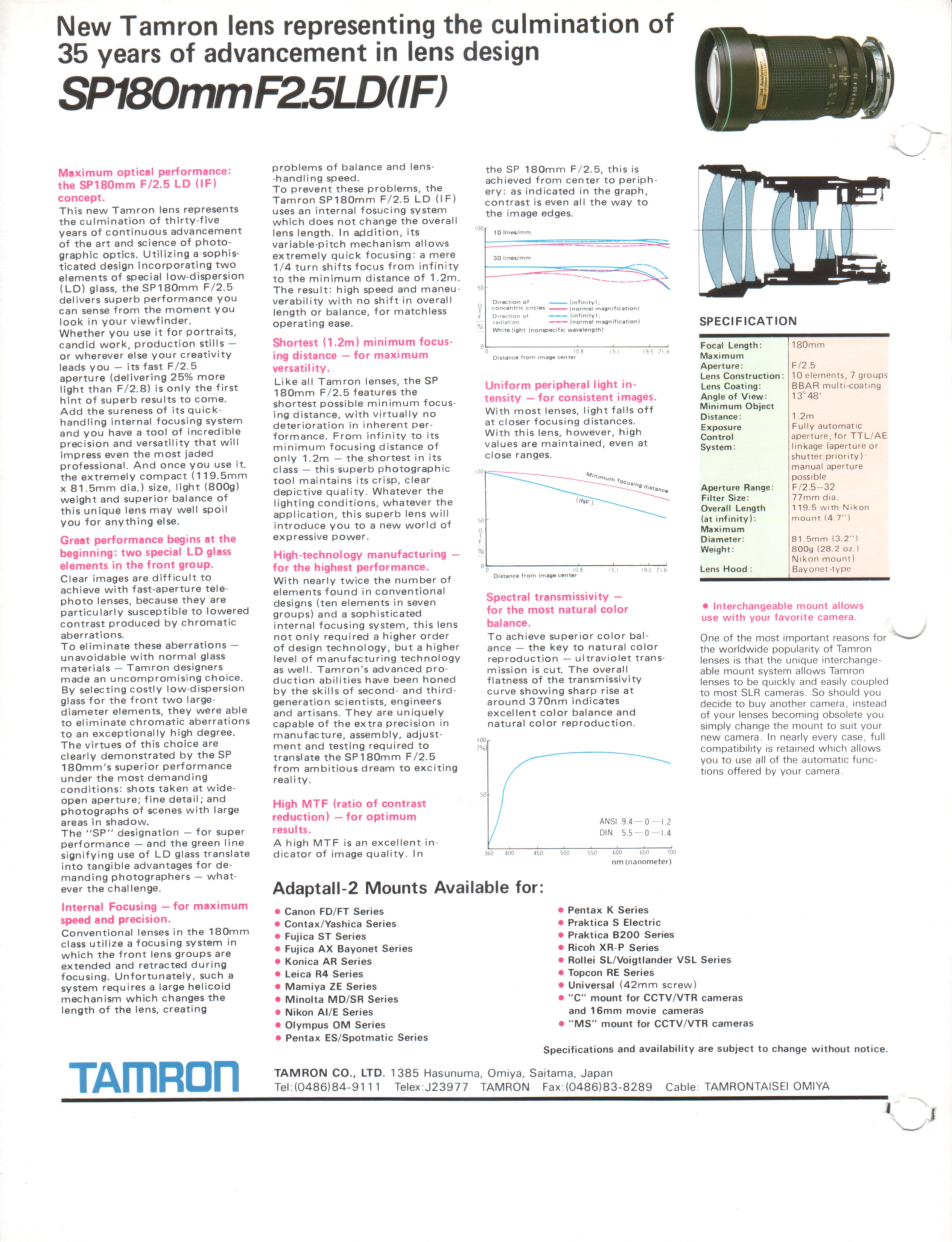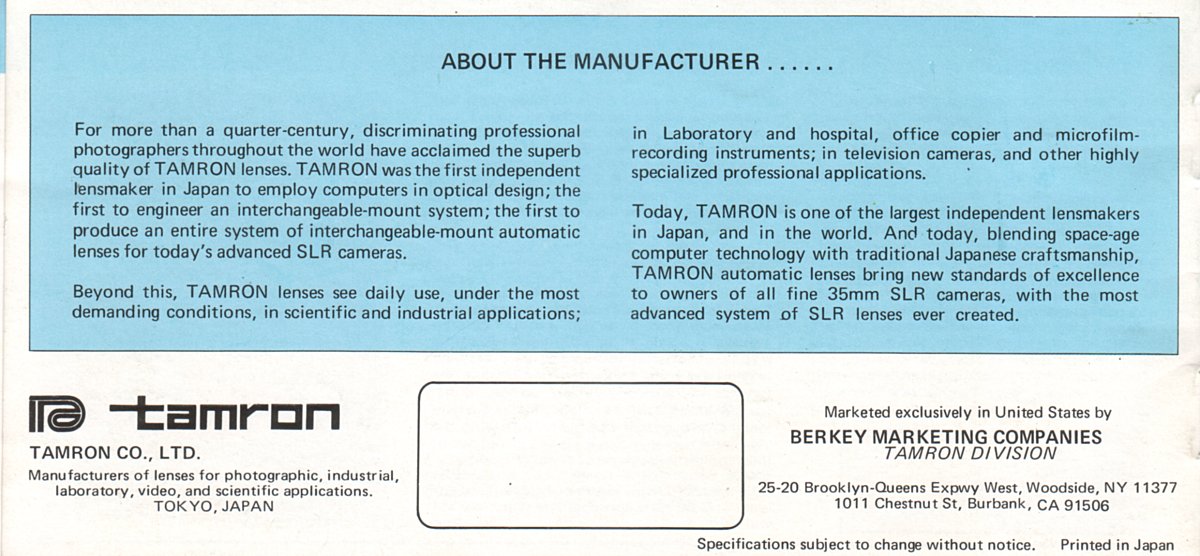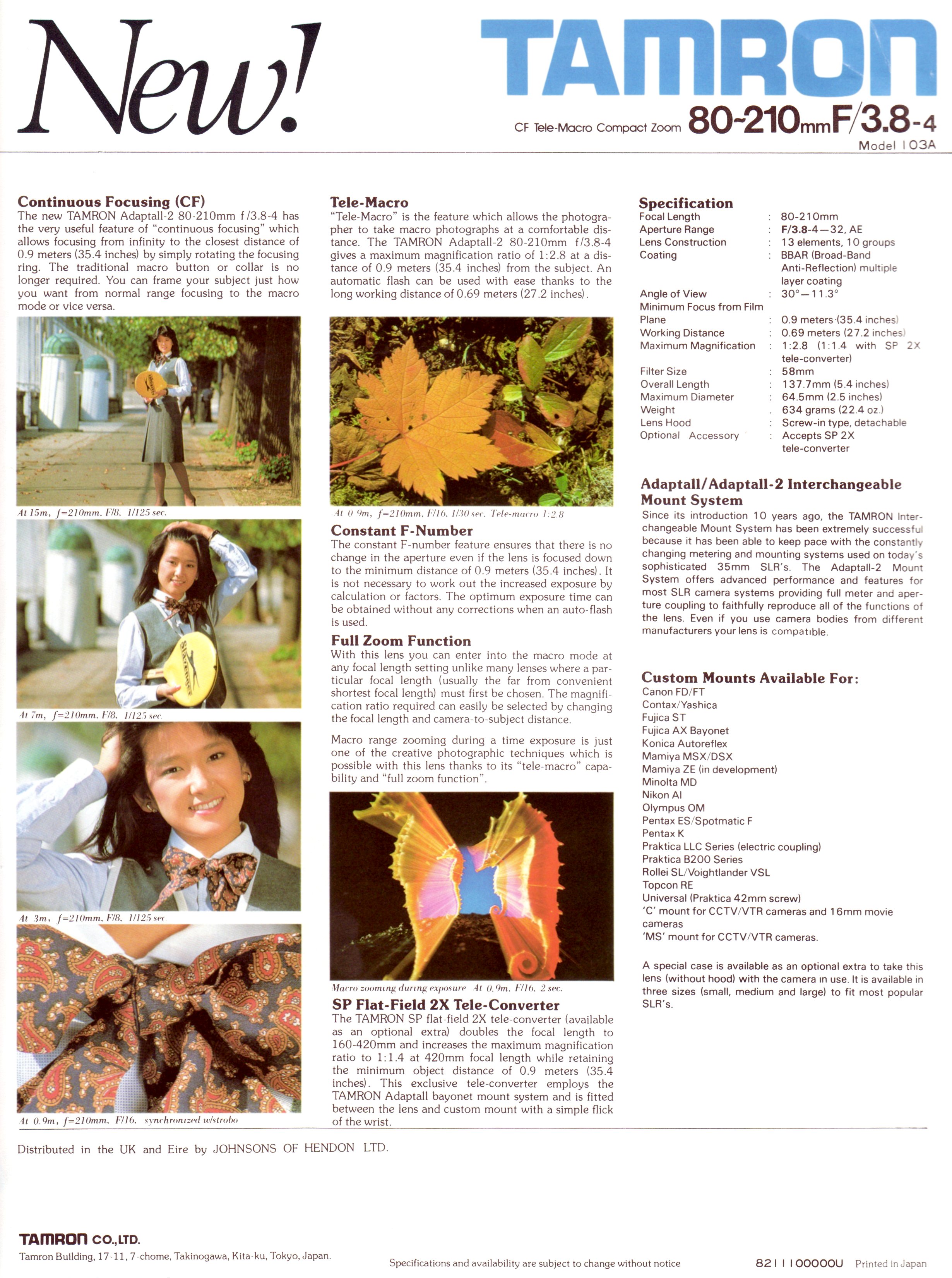 Tamron sales brochures, advertisements, catalogs and flyers. Brochures for a