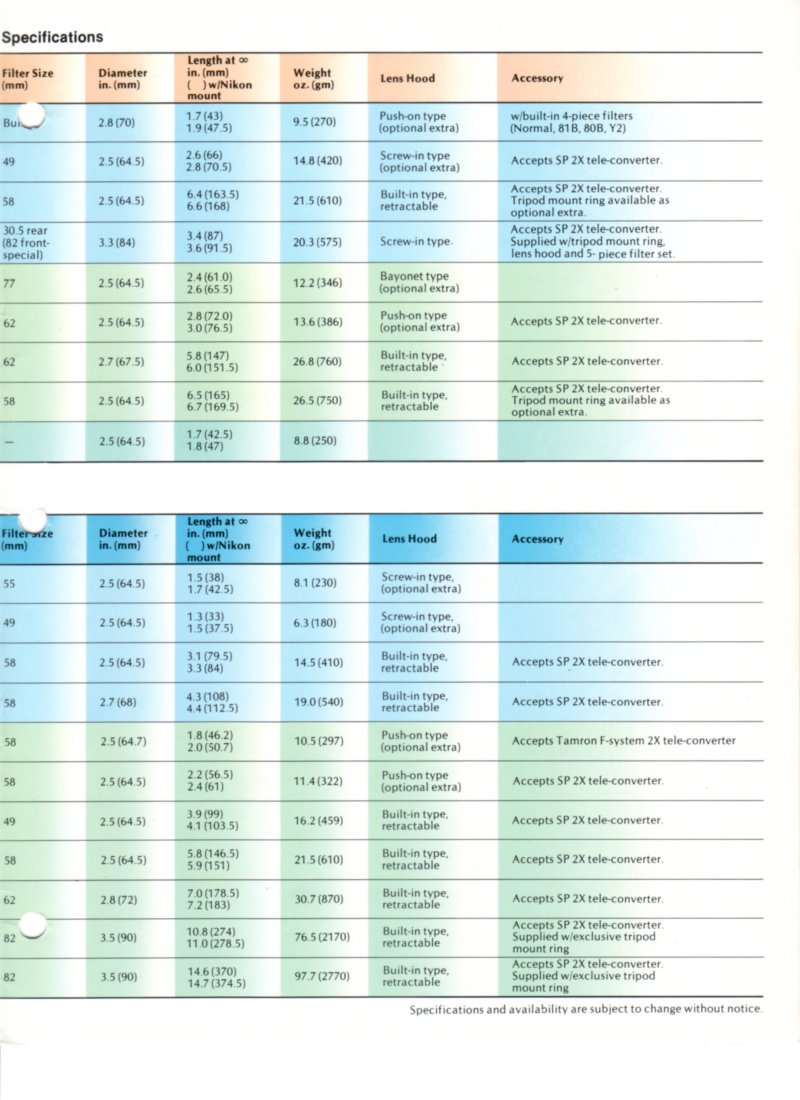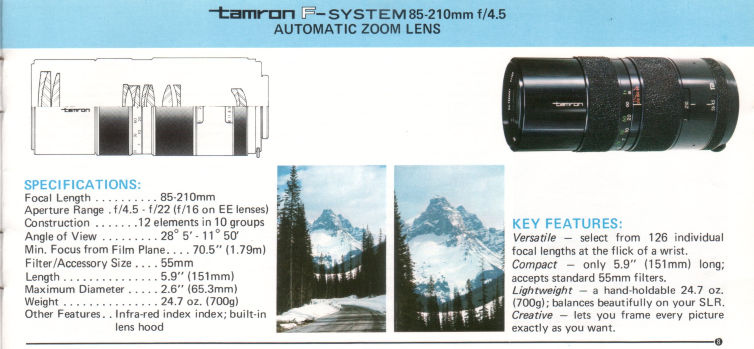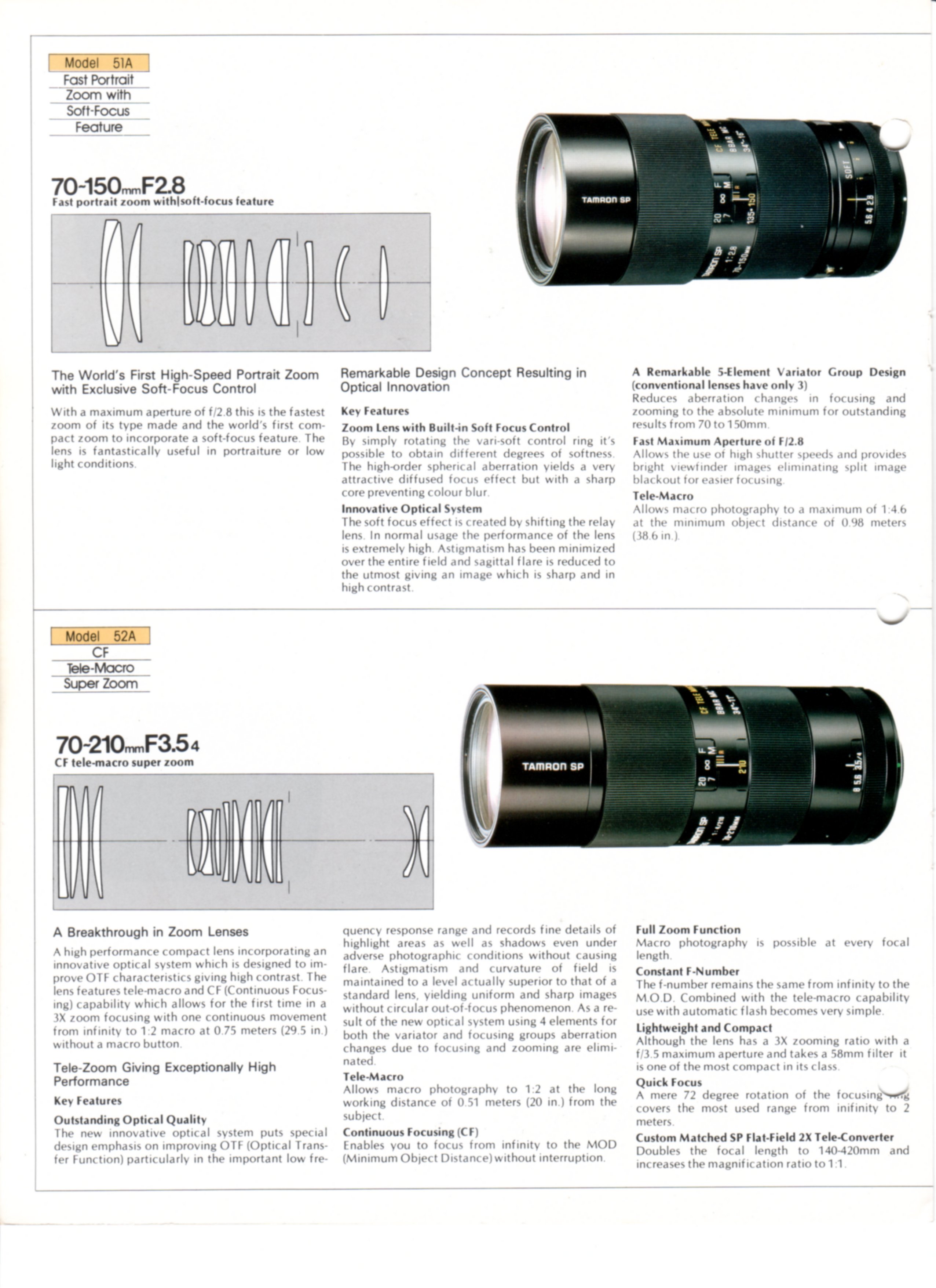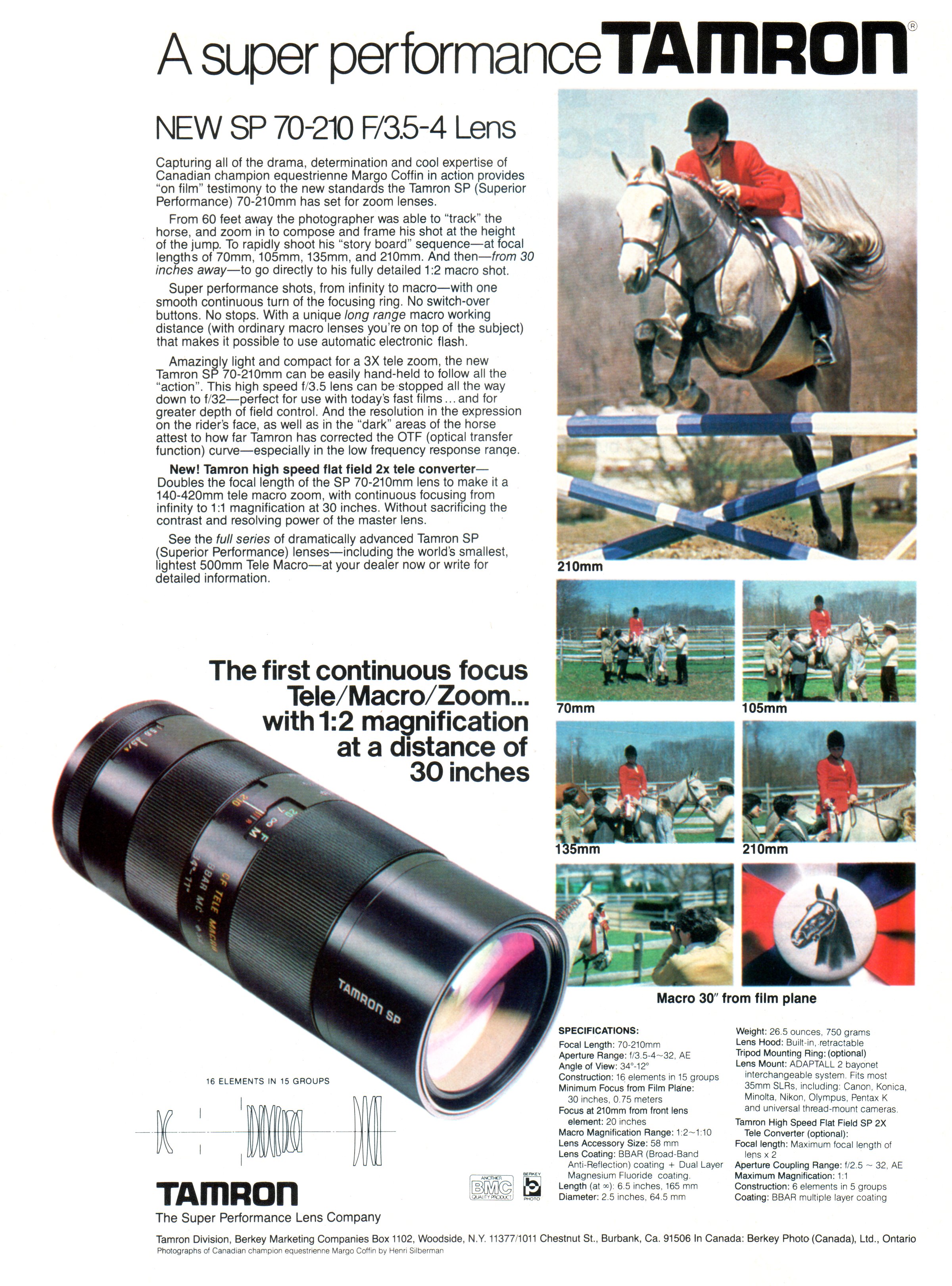 for Tamron's SP 70-210 F/3.5-4 zoom lens ran in the June and July 1979 issues