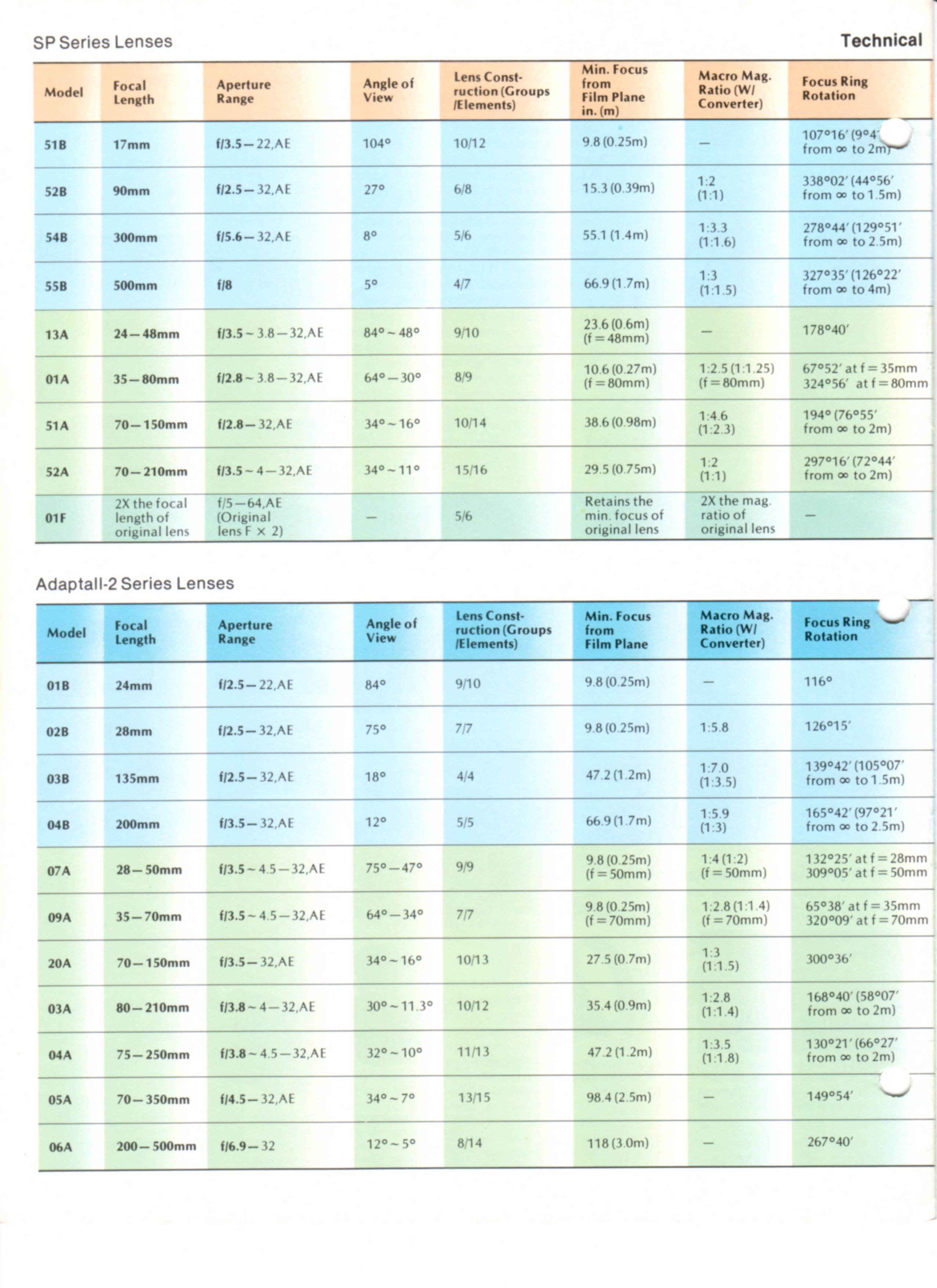 (2-7/8" x 5-7/8" when folded) from early 1972. Some Adapt-A-Matic lenses which